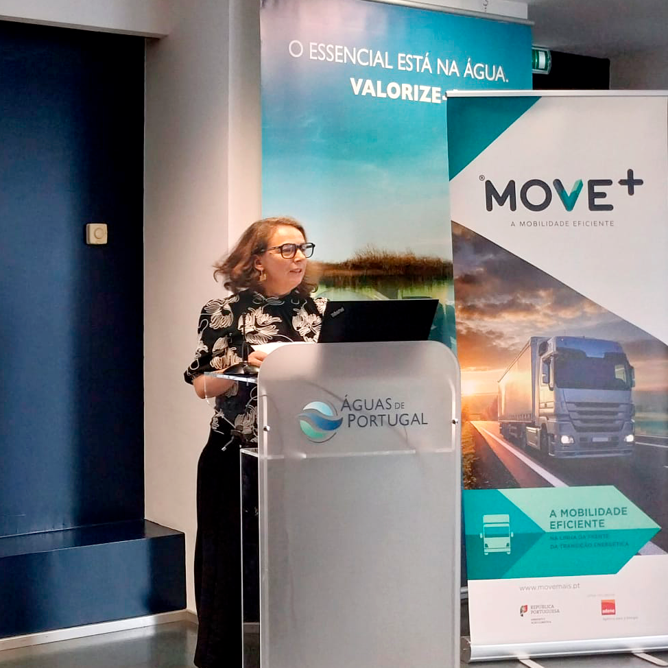 Fátima Santos, Coordenadora de Desempenho e Negócios da TIS – Consultores em Transportes, Inovação e Sistemas, mostrou a visão setorial e o caso concreto do Plano de Mobilidade Empresarial da TIS.  A Hélder Rodrigues, Coordenador de Mobilidade da ADENE, coube apresentar o MOVE+ Empresas, fazendo o seu enquadramento no MOVE+, a metodologia usada e os próximos passos.