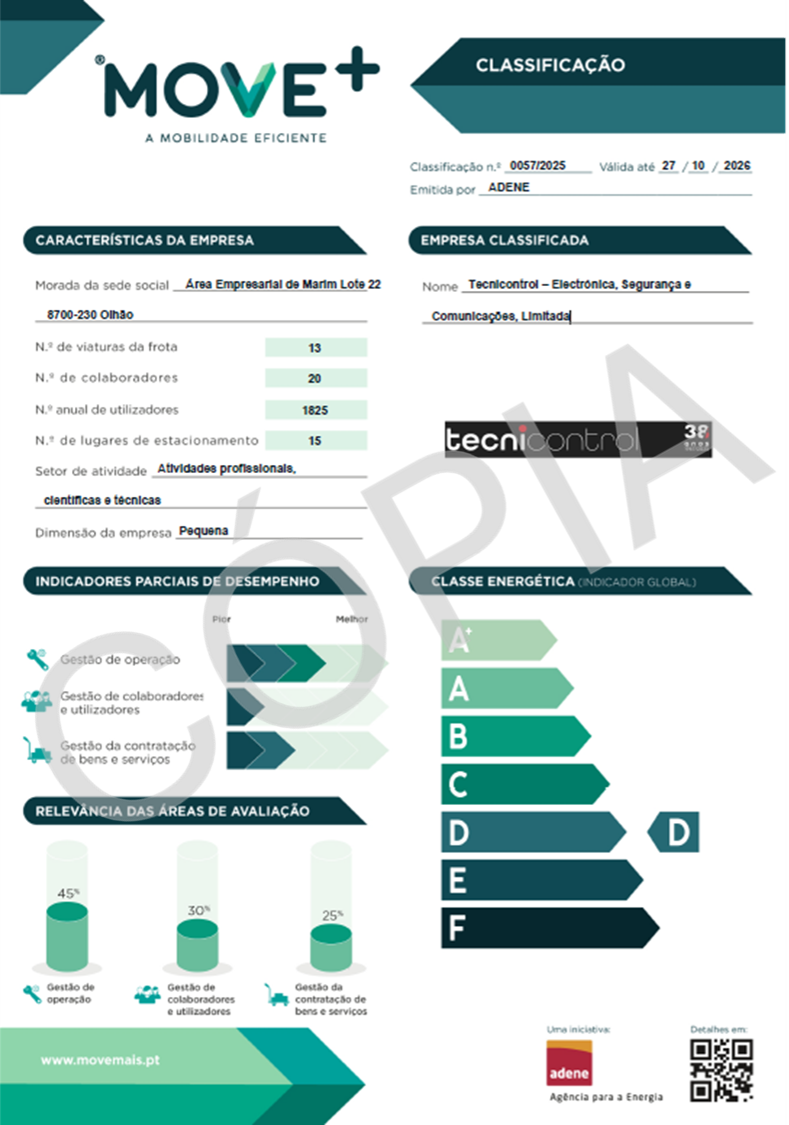 A Tecnicontrol participou nos pilotos MOVE+ Empresas tendo contribuído para a calibração da metodologia. Destacam-se as suas boas práticas ao nível da gestão da operação, em particular a monitorização da frota própria e dos consumos e emissões associadas às deslocações em serviço.