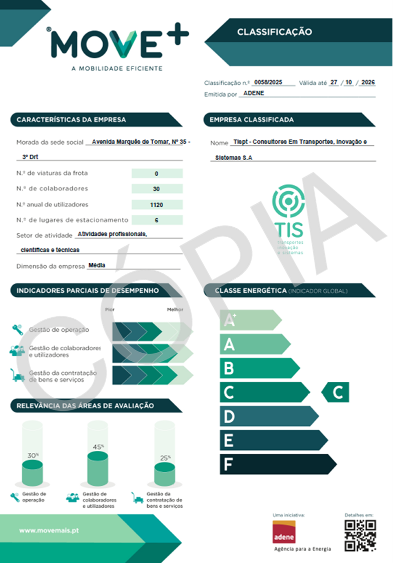 A TIS tem mais de 30 anos de experiência na consultoria de transportes e mobilidade, trabalhando para desenvolver projetos de consultoria, auditoria e investigação. Trabalham para transformar a mobilidade, criando soluções eficientes e inovadoras que atendam às necessidades de todos. Planeiam e desenvolvem propostas com o objetivo de promover uma melhor integração dos espaços e sistemas de transporte, melhorando a acessibilidade e a qualidade de vida.