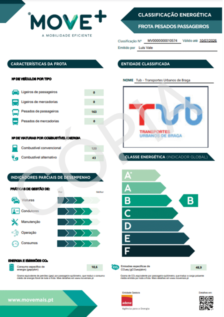 Com a concretização de todas as medidas de melhoria identificadas, a frota dos TUB poderá alcançar a classe energética A.